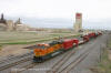 The caravan of Suncor/Jacobs Reactor aboard CEBX 800 with BNSF 7687 on 4/4/2005 entering one of the Amarillo, Texas yards.